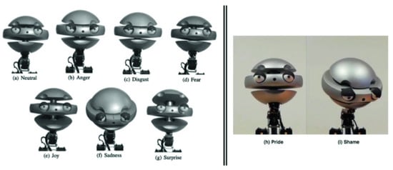 - Striepe, H.; Lugrin, B. There Once Was a Robot Storyteller: Measuring the Effects of Emotion and Non-verbal Behaviour. In International Conference on Social Robotics; Kheddar, A., Yoshida, E., Ge, S.S., Suzuki, K., Cabibihan, J.J., Eyssel, F., He, H., Eds.; Springer International Publishing: Cham, Switzerland, 2017; pp. 126–136. [Google Scholar]