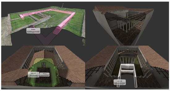 - Annotation and representation of interpretative hypotheses are core aspects of semantically enriched 3D models, useful both to clarify ideas during the scientific process and to communicate them to the colleagues as well as to give contextualized feedback for each assumption/interpretation. The goal of the research was to improve the dissemination of the full reconstructive EM dataset, organized by epochs, to allow a “time travel” experience (see Section 3.1).