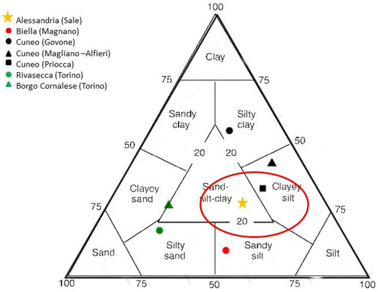 The comparison of the granulometric distribution of the earthen bricks of Sale (Alessandria) with those of the Piedmontese provinces of Cuneo, Turin, and Biella showed a greater affinity of the samples tested with those of the Cuneo area (Figure 12).