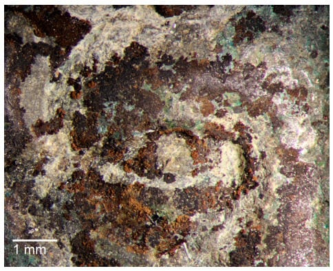 “A spectre is haunting Europe”. This was the impression when conservators first heard from Helge Brinch Madsen at the ATM conference in Schleswig in 1976 [3] and the SSCR conference in Edinburgh in 1979 [4] talk about ‘Black Spots on Bronzes’ identified in European museums (Figure 1). As the spots looked like black mould (while containing copper sulfide) and a copper tolerant cladosporium fungus was detectable, Brinch Madsen discussed a ‘microbiological attack’. “The impression was clearly given that there is an epidemic of ‘black spot disease’ sweeping through European museums” [5]. Colleagues went home, took a closer look at their collections—and found them themselves! Some conservators were even fearing that they might spread the ‘infection’ from case to case. This was a kind of scientific déjà vu experience: a cladosporium species had already been thought to be the cause of bronze ‘disease’ as early as 1893 (SCOTT 126), when the recommended ‘therapy’ was sterilisation at 120 °C!