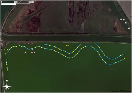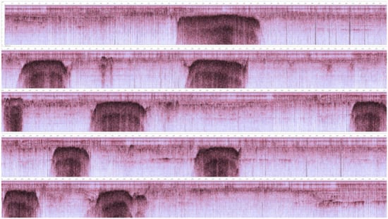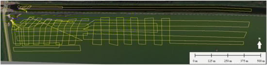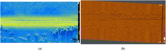 All the scans were completed with geometry as rigorous as possible, based on parallel north–south swaths (Figure 7) (about remote sensing for underwater research of palaeo-watercourses, see [21]).