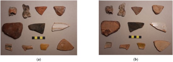 - Marrocchino, E.; Telloli, C.; Tessari, U.; Cesarano, M.; Bruni, M.; Vaccaro, C. Archaeometric Surveys of the Artifacts from the Archaeological Site of Baro Zavelea, Comacchio (Ferrara, Italy). Appl. Sci. 2022, 12, 11692. [Google Scholar] [CrossRef]