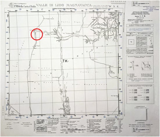 The 1949 IGM aerial photos, in particular the Frame: 52, Swipe: 11, Sheet: 77, Location: 1949, Date: 11 July 1949, Elevation: 3600, Scale: 18,000, and the Map IGM F89 IV NE, 1935, Valle Lido Magnavacca, document the morphology of the river in the first half of the last century, subsequently rectified west–east for the construction of the Fosse drainage complex: the residue of the river shows a meandering path in the direction of a mouth (Figure 19).