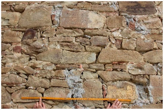 The use of the local lithotype has therefore made it possible to build walls which, although not made of square blocks, respect a fair regularity of the textures (Figure 7).