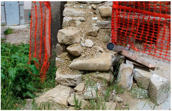 Between 2016 and 2017, an extreme series of earthquakes hit central Italy. The first mainshock occurred on August the twenty fourth, 2016; the epicentre was localized nearby Amatrice, a small historical city in northern Lazio. The aftershocks came in succession up to January 2017, and the most intense aftershock occurred nearby Norcia (Umbria) on October the thirtieth 2016, considerably increasing the damage [1]. The entire earthquake sequence involved a wide territory, including four different regions: Lazio, Umbria, Abruzzo, and Marche. Among the more than one hundred historical city centres severely damaged, Amatrice, hit since the first mainshock, had the worst balance; the current study has focused on this territory. The need to urgently study the local building tradition to increase knowledge and to provide a documentation of the conservative conditions of the historical fabrics immediately became clear. The historical urban fabric was not well-known until the earthquake, except for architectural excellences such as churches and palaces. It was therefore considered important to develop an analysis procedure as it is necessary for the study of historic buildings. In fact, in recent years, scientific research has shown that in the many cases where the historical evolution of architecture is not known, it is important to establish a precise and repeatable analysis procedure for an in-depth knowledge of the built heritage [2]. The focus of this research has been oriented on ordinary historical residential and rural buildings. To conduct this research, it was necessary to project and carry out a program of emergency studies to know and document local historical building traditions. The conditions of collapse or severe damage have been converted into opportunities of a fast examination of the structures and building techniques (Figure 1, Figure 2 and Figure 3).