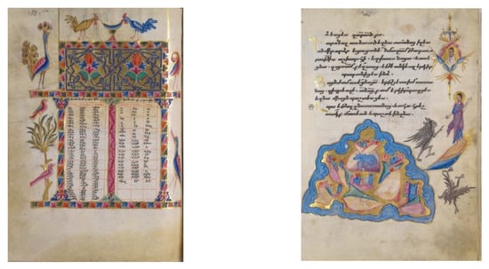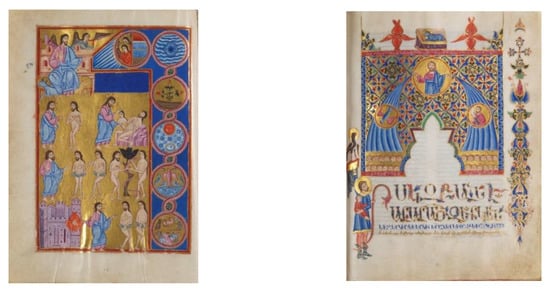 - Kouymjian, D. Armenian Medieval Illumination. In Armenia: Imprints of a Civilization; Gabriella Uluhogian, G., Zekiyan, B.L., Karapetian, V., Eds.; Skira: Milan, Italy, 2011; p. 97. [Google Scholar]