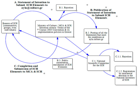 As Russell Ackoff stated, in 1981, “System is a single set, which has one or more defining functions and consists of two or more essential parts, fulfilling three basic rules” [44]. In the prementioned case, the essential parts are the two countries which intend to inscribe a new element in UNESCO’s lists. The first and most critical “defining function” is the recording and the visualization of their ICH, thus the second one is the registration of its ICH into one UNESCO list. Knowing that the three basic rules are: