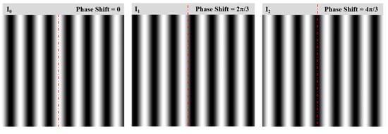 where is the wrapped phase. Figure 2 shows an example of fringe images with 3-step phase shifting, produced using Equation (1).