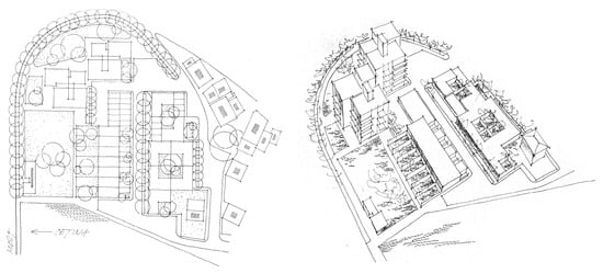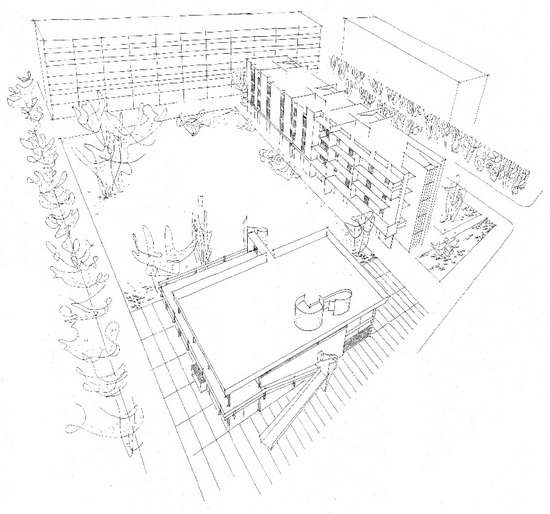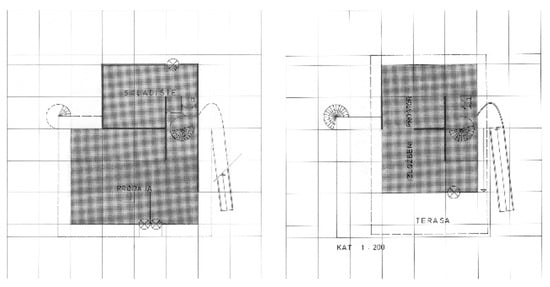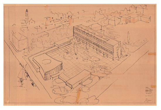 By designing a commercial building, the architect showed an interest in sculptural components of the architectural language, explaining this decision by the fact that “such facility is supposed to attract customers and by its likeable and pleasant appearance must justify its very existence” [67] (p. 50) (Figure 8, Figure 9 and Figure 10). Studied work 2