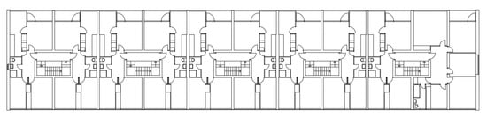 Similarly, Gotovac designed several buildings in Split (7, 9 Washington Street; 2, 3, 4 Ivan Lozica Drive and 7, 9, 11 Pojišan Street; 1-11 Karaman Street) and Omiš (10, 12, 14, 16, 18 Fra Stjepan Vrlić Street), in the period between 1965 and 1970, by articulating the building’s volume with smaller segments employing either vertical or horizontal volume shifts [28] (pp. 100–123, 75–91, 202–209). The parts of the façade which are close to the river are formed by long horizontal strokes of balconies and loggias, and the remaining parts by the stringing together of vertical strokes, consisting of full walls and French windows.
