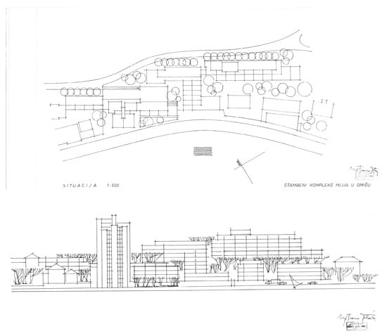 - Gotovac, F. Commercial Facility in Omiš; Arhitektura—Urbanizam: Belgrade, Serbia, 1968; pp. 49–51, 53–54. [Google Scholar]