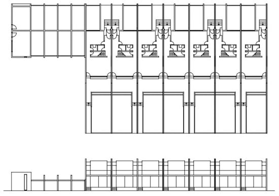 In the context of European creativity, it is necessary to highlight the specific thinking of the Spanish architect Coderch, who on the ISM building from 1951 in Barcelona opened the facade with shutters covering the entire height of the opening, i.e., the floor [68] (p. 341), [79,80]. The Italian architect Ignazio Gardella used horizontally movable brisoleils on a residential building from 1951 in Alessandria [81] (p. 501). These brisoleils are similar in shape to those used by Radić on the northern façades of his buildings.