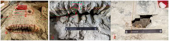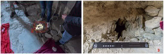 The first burial vault (Figure 9) probably had a rectangular shape and two breaches, the first on one end and the other on the side. The breach on the end of the first burial vault was approximately 1 m × 0.15 m (width × height), and the second breach was roughly 0.3 m × 0.20 m.