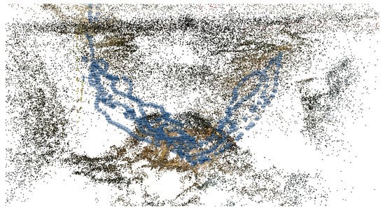 After some tests, a sampling rate of 1 Hz was considered the most suitable for most experiments presented in this paper. Generally, it is recommended to use a sampling rate among frames of a maximum of a few seconds to improve image orientation and dense matching. In addition, if the recording of the borescope data is extended outside of the buried chamber, it is recommended to significantly reduce the insertion speed through the breach. Further selection criteria based on the quality of the frames (i.e., avoiding low-quality and blurred frames) as well as on the similarity of the frames were not implemented in this work and will be tested in the future.