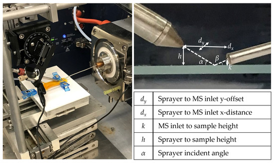 DESI-MS is dependent on multiple interconnected parameters; instrumental, geometrical, and chemical in nature. It is especially dependent on the geometrical parameters of the sprayer set-up (Figure 1) [10,11,18,19,20]. The optimized geometry often differs with the target molecule and substrate used, making it difficult to standardize optimum geometry for all applications.