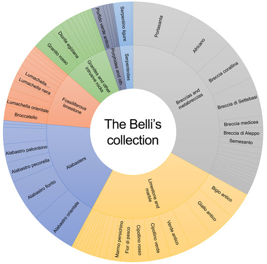 For these reasons, it is evident that Belli’s collection, similar to other important collections stored and exhibited in the most famous science museum in the world, can be considered a powerful tool for identifying the lithotypes and, above all, the provenance of materials, in order to deepen the knowledge relating to the archaeological, artistic, and architectural sites in which they were used.
