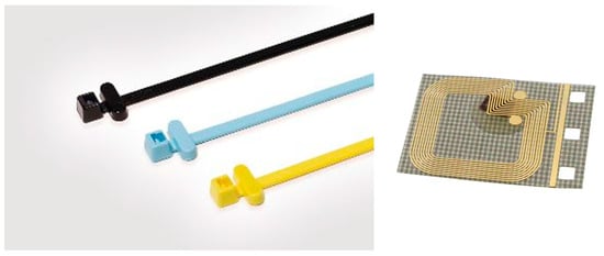 Example of cable ties with Rfid (HellermannTyton) and Rfid tags (Atmel).
