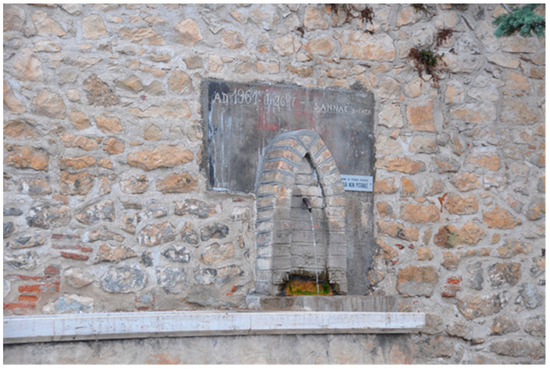 The palace enclosure walls also represent the ancient city wall, on which the ancient fountain from which the aggregate takes its name (“Fonte Sant’Anna”) stands (Figure 7).