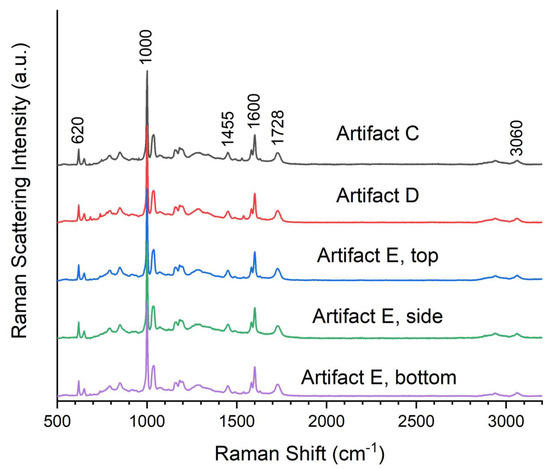 Raman spectra of Artifacts C, D, and E.