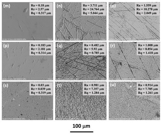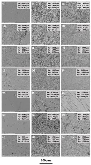SEM analyses were performed with a HITACHI S3700N scanning electron microscope. This technique was appropriate for studying the micro-textures and modifications in roughness at the stone–water–air interface. Numerical parameters of roughness (Ra, Rq, and Rz) were obtained using a MITUTOYO SURFTEST SJ-210 (calibration standard by ISO1997). The measurements have been taken by selecting an exploration length of 4.80 mm and a sensor speed of 0.5 mm/s. The standard roughness, Ra, is defined as the arithmetic mean value of the deviations (taken as an absolute value) of the real profile of the surface with respect to the mean line. Rq is defined as the square mean of the deviations of the profile points from the mean line. It enables simple statistical management and allows for stable results because it is not significantly affected by scratches and contamination. Rz is defined as the distance between two lines parallel to the mean line passing, on average, between the five highest peaks and the five lowest valleys within the limits of the base length. Roughness was calculated before and after natural and artificial weathering.