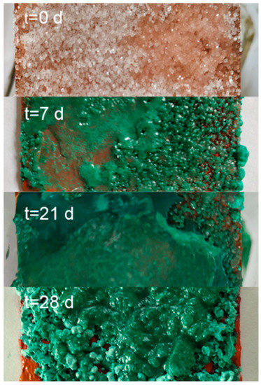 Image of the progress of the verdigris synthesis experiment with the viride salsum recipe (TEO).