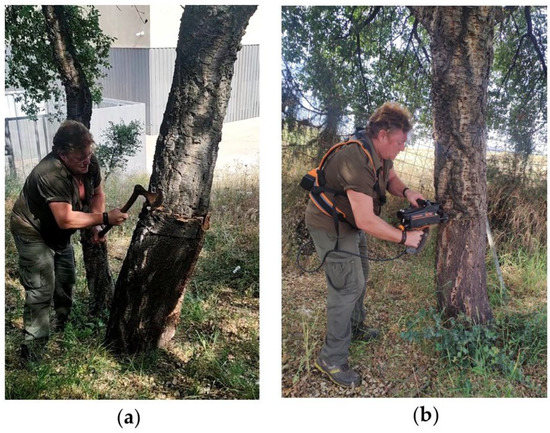 Among them, a small chainsaw has been developed that, according to the experts, does not require as much experience, as it is easier to use than an axe and involves fewer risks, both for the operator and the tree itself (Figure 3). In conclusion, they state that this tool “is more careful with the tree and less dangerous for people. It is easier to learn to use than the axe. With the axe, the operator had to have dexterity, experience and strength. In addition, the depth and caliber had to be calculated briefly, and there are many blows to the tree. The less caliber it has, the more damage you can do to the tree”.