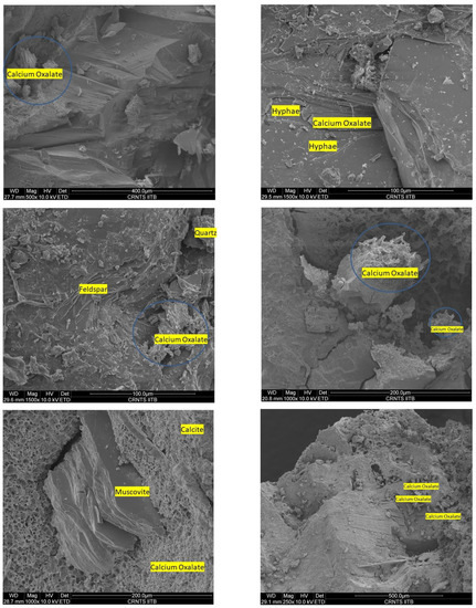 - Alessandrini, G.; Bonecchi, R.; Peruzzi, R.; Toniolo, L. Caratteristiche composizionali e morfologiche di pellicole ad ossalato: Studio comparato su substrati lapidei di diversa natura. In Le Pellicole ad Ossalati: Origine e Significato Nella Conservazione delle Opere d’Arte; Centro CNR “Gino Bozza”: Milano, Italy, 1989; pp. 137–150. [Google Scholar]