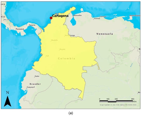 (a) General localization of Colombia; (b) Location of the Cartagena World Heritage Sites.