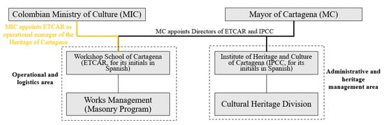 In addition, the MIC is the entity at the national level in charge of the promotion and protection of cultural heritage in Colombia. In this sense, it works together with the IPCC and ETCAR for the management and conservation of the cultural heritage of Cartagena de Indias, supporting projects for the restoration and conservation of heritage assets, as well as training programs in traditional trades (Figure 4).