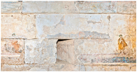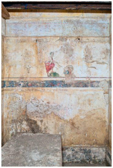 - Minos, N.H. συντήρηση των τοιχογραφιών του τάφου. In Κιβωτιόσχημος τάφος με ζωγραφική διακόσμηση από την Πέλλα, Πέλλης 1; Lilimbaki-Akamati, M., Ed.; Ministry of Culture, 17th Ephorate of Prehistoric and Classical Antiquities: Thessaloniki, Greece, 2007; pp. 134–136. [Google Scholar]