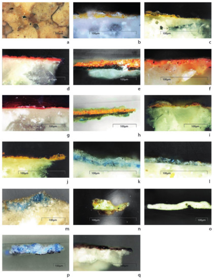 (a–q) Cross-sections of samples P.1–P.17 under incident reflected light (photomicrographs by Yannis Maniatis).