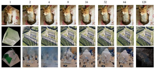 - Mildenhall, B.; Srinivasan, P.P.; Tancik, M.; Barron, J.T.; Ramamoorthi, R.; Ng, R. Nerf: Representing Scenes as Neural Radiance Fields for View Synthesis. Commun. ACM 2021, 65, 99–106. [Google Scholar] [CrossRef]