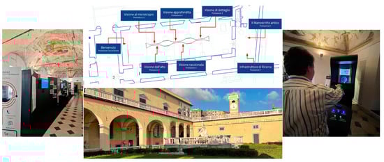 - Pietroni, E.; Pagano, A.; Poli, C. Tiber Valley Virtual Museum: User experience evaluation in the National Etruscan Museum of Villa Giulia. In Proceedings of the 24th International Conference in Central Europe on Computer Graphics, Visualization and Computer Vision WSCG 2016, Plzeň, Czech Republic, 30 May–3 June 2016; Skala, V., Ed.; UNION Agency. University of West Bohemia: Plzeň, Czech Republic; pp. 97–106. [Google Scholar]