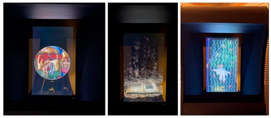 In previous studies about visitors’ experiences with holographic showcases [,], we observed some common patterns; for example:
