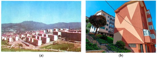 - Recognized quality: the urban and architectural quality and singularity of the complex, consolidated in time and recognized in specialty publications and various media or obtained by other analysis methods []. Many building estates and complexes with high urban and architectural value built between the 1940s and the 1980s are still not included in heritage protection catalogues and run a high risk of being totally deconfigured by current and future interventions;