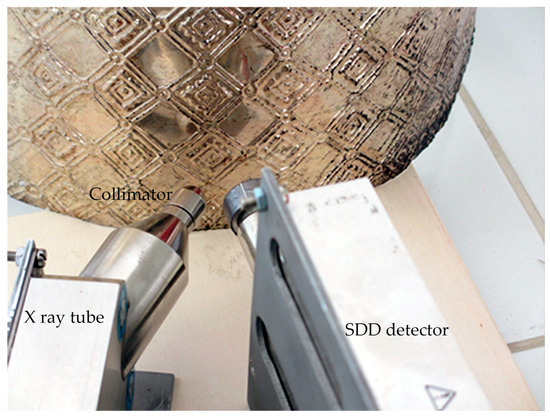 - Scrivano, S.; Ruberto, C.; Gómez-Tubío, B.; Mazzinghi, A.; Ortega-Feliu, I.; Ager, F.J.; Laclavetine, K.; Giuntini, L.; Respaldiza, M.A. In-situ non-destructive analysis of Etruscan gold jewels with the micro-XRF transportable spectrometer from CAN. J. Archaeol. Sci. Rep. 2017, 16, 185–193. [Google Scholar]