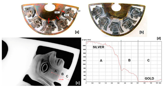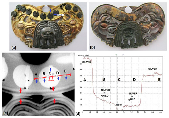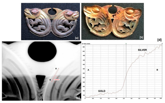 - Using a mercury amalgam with a heating process, as in the case of nose ornament 011 [25], where Hg was clearly detected in the interface of Au-Ag and possibly in many other nose ornaments.
