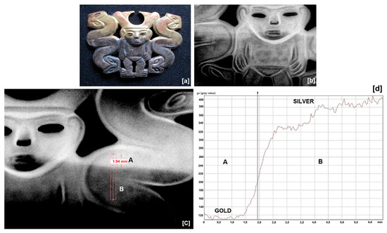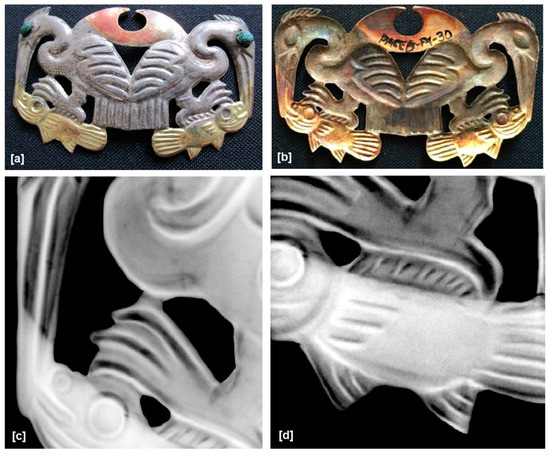 - Azeredo, S.; Cesareo, R.; Franco, R.; Fernandez, A.; Bustamante, A.; Lopes, R. Structural analysis of jewelry from the Moche tomb of the lady of Cao’ by X-ray digital radiography. J. Instrum. 2018, 13, C04029. [Google Scholar] [CrossRef]