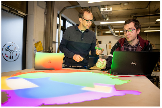 - Drogemuller, A.; Cunningham, A.; Walsh, J.A.; Baumeister, J.; Smith, R.T.; Thomas, B.H. Haptic and Visual Comprehension of a 2D Graph Layout Through Physicalisation. In Proceedings of the 2021 CHI Conference on Human Factors in Computing Systems, Yokohama, Japan, 8–13 May 2021. [Google Scholar] [CrossRef]