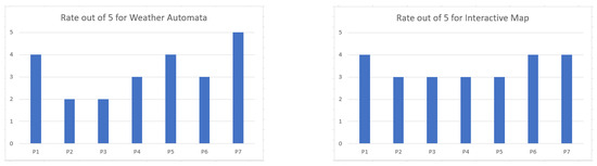 Along with what was catching the participant’s attentions, we were also interested in people’s attitudes towards the Daptec exhibit. The questionnaire study gave us a deeper glimpse into not only what people were noticing, but also into what they were engaging with and what they wanted more of. In detail, the data from the questionnaires highlighted that more could be done to demonstrate how the exhibit generates the visuals/aesthetic from the weather data (e.g., how the weather determines the aesthetic and then what this means). Similar to the findings from the observational study, the young participants alluded to the need for further iterations. For example, they said that they would improve the exhibit in the following ways: ‘I really like the exhibit yet if I were to change something I would make the buttons more clear on what they are showing on the map’ (P4) and ‘Something to show what the front bit on the map does’ (P5). Despite the majority of participants rating the exhibit highly (see Figure 9), it is clear that some aspects of the exhibit were working effectively but that other areas still needed more iterations, particularly for the younger audiences. Interestingly, the five words used to describe the Daptec Flat Holm exhibit ranged from interesting to fun to good: