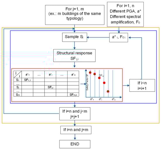 Therefore, for each of the 10 buildings, the safety factor SF (the lowest between the static factor SFSi and global factor SFGi for each i building) was computed for all the acceleration values as well as the consequent loss of performance in the structural response.