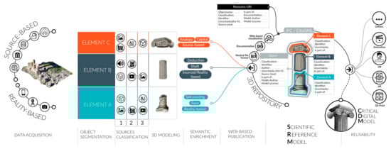 - Kuroczyński, P.; Apollonio, F.I.; Bajena, I.; Cazzaro, I. Scientific Reference Model—Defining standards, methodology and implementation of serious 3D models in archaeology, art and architecture history. In The International Archives of the Photogrammetry, Remote Sensing and Spatial Information Sciences; The International Society for Photogrammetry and Remote Sensing: Bethesda, MD, USA, 2023; Volume XLVIII-M-2-2023. [Google Scholar] [CrossRef]