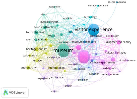 Cluster five: Museum design, experience, and sustainability. This cluster (purple-colored) highlights terms related to design, experience, and sustainability [121,122,123,124]. The terms in this cluster indicate a focus on understanding how museum architecture and design influence visitor experiences and satisfaction, particularly in cultural and heritage contexts. Furthermore, the inclusion of the term “sustainability” indicates a growing interest in ensuring that museum practices and designs are environmentally and culturally responsible. This cluster suggests future research areas for creating positive and sustainable museum visitor experiences, considering architectural design, visitor engagement, and sustainability.
