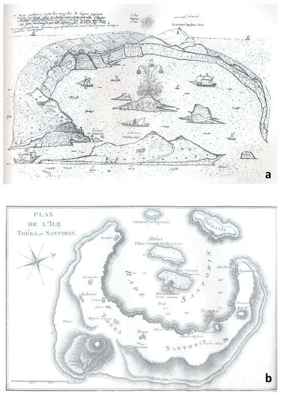 - Boufalis, A. Τα Τοπωνύμια Της Θηρασίας Subtitled [The Place-Names of Therasia]. In Θηρασία ΙΙΙ: Aρχαιολογική Έρευνα και Ιστορία του τόπου μιας νησιωτικής κοινωνίας Subtitled [Therasia III: Archaeological Research and Landscape History of an Island Community]; Sbonias, K., Tzachili, I., Eds.; Τα Πράγματα: Athens, Greece, 2021; Volume III, pp. 478–487. [Google Scholar]