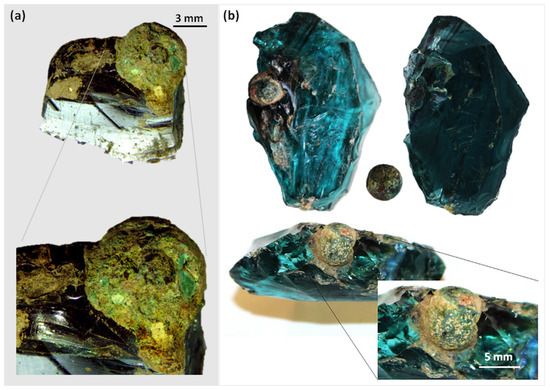 - Di Turo, F.; Moro, G.; Artesani, A.; Albertin, F.; Bettuzzi, M.; Cristofori, D.; Maria Moretto, L.; Traviglia, A. Chemical analysis and computed tomography of metallic inclusions in Roman glass to unveil ancient coloring methods. Sci. Rep. 2021, 11, 11187. [Google Scholar] [CrossRef] [PubMed]