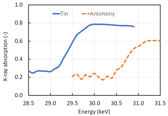Standard absorption-based imaging can only distinguish constituent particles of different compositions on the basis of differences in the attenuation of X-rays and, thus, the grey level of particular voxels. This can be ambiguous if the electron density of elements within neighbouring phases is very similar. Hence, it can often be difficult to distinguish different tempering agents in ceramics or pigment and opacity agents in glass if they contain similar atomic number elements. However, a different X-ray imaging method, known as K-edge imaging, can remedy this drawback [1]. The X-ray spectra of given individual elements exhibit sharp increases in absorption at a particular X-ray energy, which is just above the binding energy of the K-shell electron. The K-edge energy is characteristic of each element, as will be seen below. If separate CXT images are acquired at X-ray energies from immediately above and below this step in the spectrum, and the difference in intensities between them is obtained by subtracting one image from another, then only voxels with the specific element contained therein would vary significantly in intensity between the two images, and, thus, be made evident in the subtracted image.