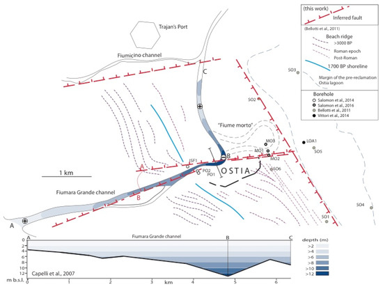 Structural-geomorphological map of Ostia Antica (from [30]).