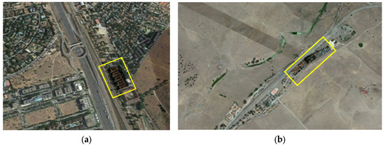 Examples of housing construction next to railway tracks. (a) Las Matas, Madrid; and (b) Arroyo-Malpartida, Cáceres. This is our own elaboration from GIS.