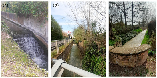In 2009, the Municipality of Parma approved a Memorandum of Understanding for the “Redevelopment of water landscapes in the city of Parma” [43]. This document, signed in agreement between numerous public and private water government authorities and the Superintendence for Architectural and Landscape Heritage, emphasized the importance of water in the city of Parma and its territory as a significant natural resource, an element of communication, and a trace of a historical past not to be forgotten. In the same document, it is stated that “…the artificial waterways, which cross the city fabric with their hierarchy and specialization, over time were culverted, causing them to be forgotten in the rapid evolutionary process of the city, but still their signs remain clear in the stratification of the historic city and the toponyms of Parma”. The act approved by the Municipality of Parma aims to restore control of all the artificial canals that cross the city and lists a series of objectives for the protection, control, management, and new design and/or identification of promenades and spaces close to the water stretches aimed at creating quality places where people can walk, observe, and stop, also in relation to the requirements dictated by the European Landscape Convention [12]. Unfortunately, the application of the protocol was minimal, as was also noted in [44], which underlines the need for maintenance of the canal. As regards the improvement of the quality of the water flowing at the open-air section of the canal, local authorities’ contribution is deemed essential in planning interventions [45].