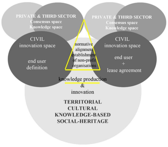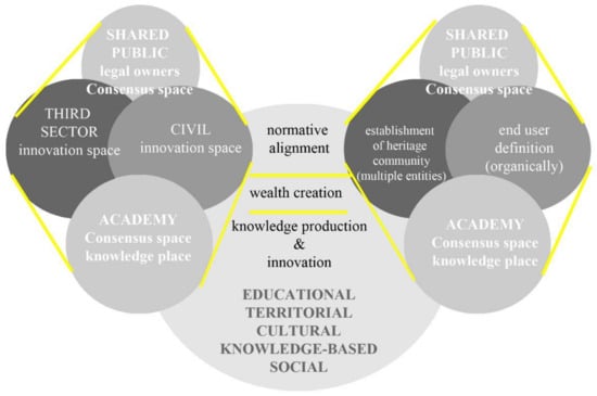 Model 2, heritage helix ecosystem for shared public ownership (elaborated by the authors based on Cai’s neo-helix elaboration [63]).